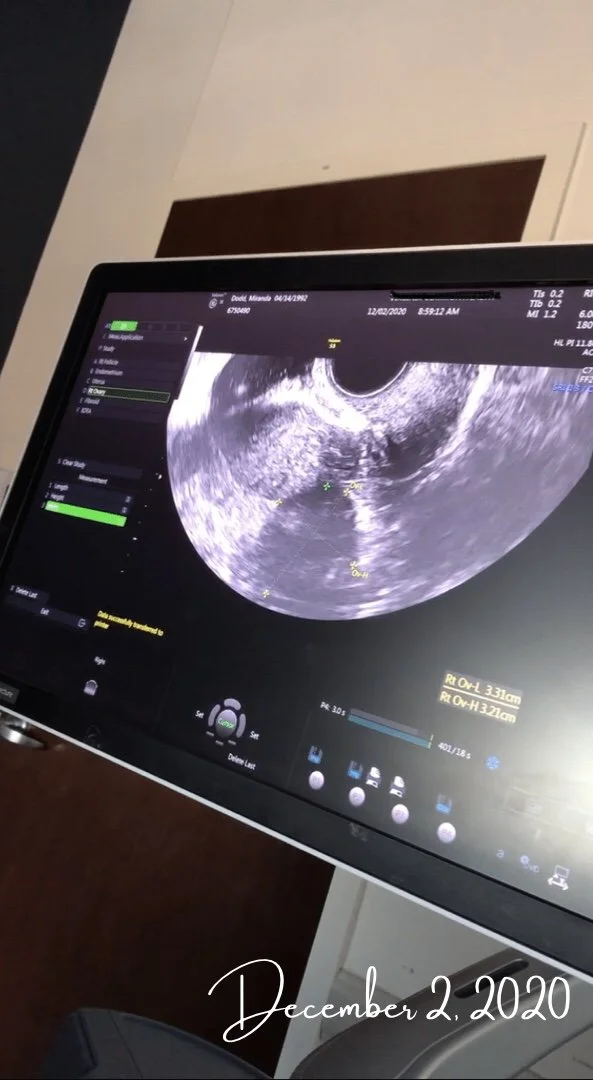 Internal Ultrasound (pictured) - My doctor was looking for egg follicles and probably other things. Look, I’m not a scientist or a doctor, I do spreadsheets. From what I understand, an egg follicle is a sac that contains an egg. She said she saw a lot of follicles which was a good sign!