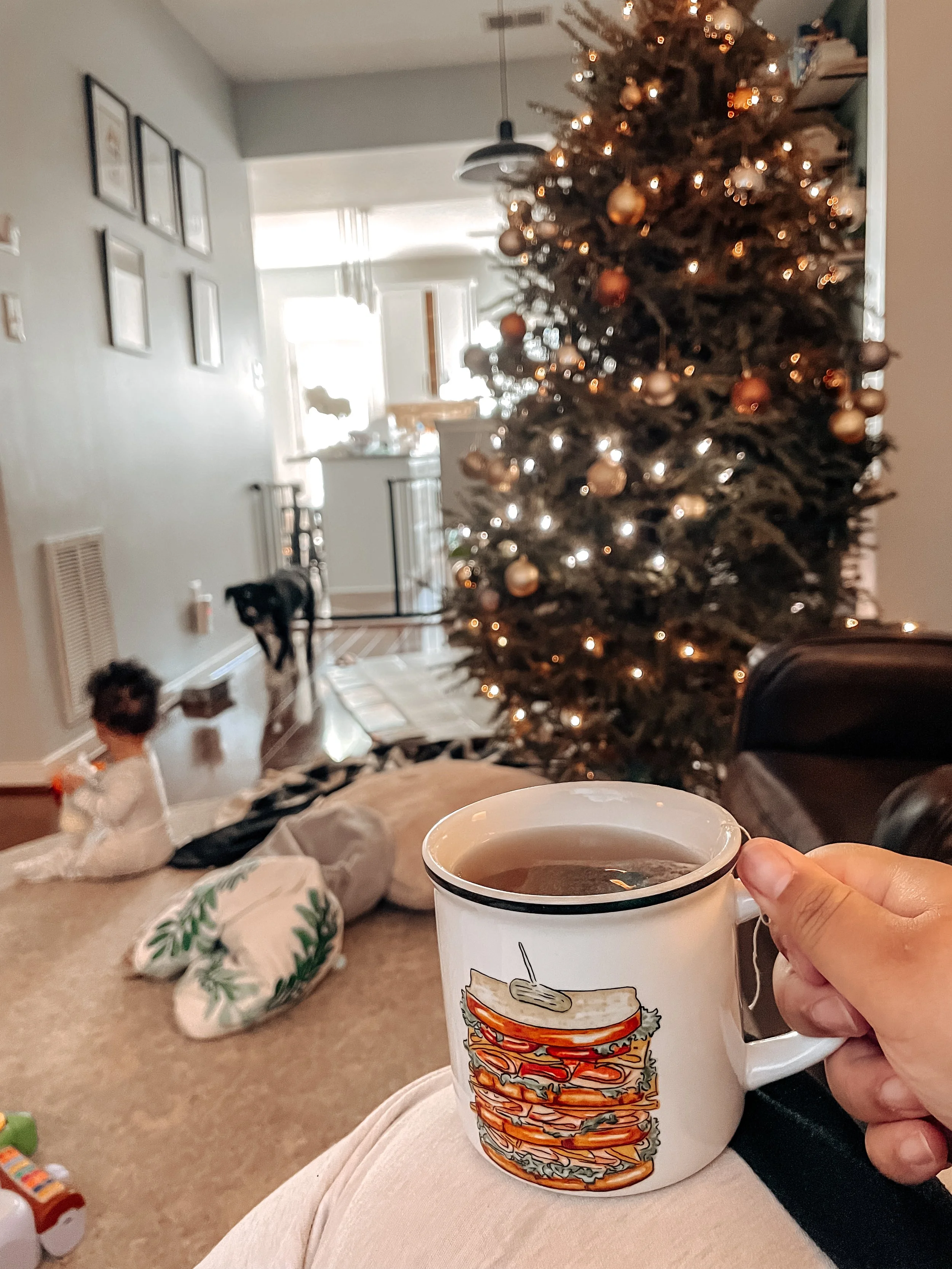 I thought I was gonna decorate our home like a gingerbread house in a winter wonderland. Even on a baby-less year, that’s an ambitious undertaking for me, so obviously I didn’t do that. But not only did I not do that, I put a half-lit string of lights on the tree. I left it there for weeks and just called it my “ghetto tree”.