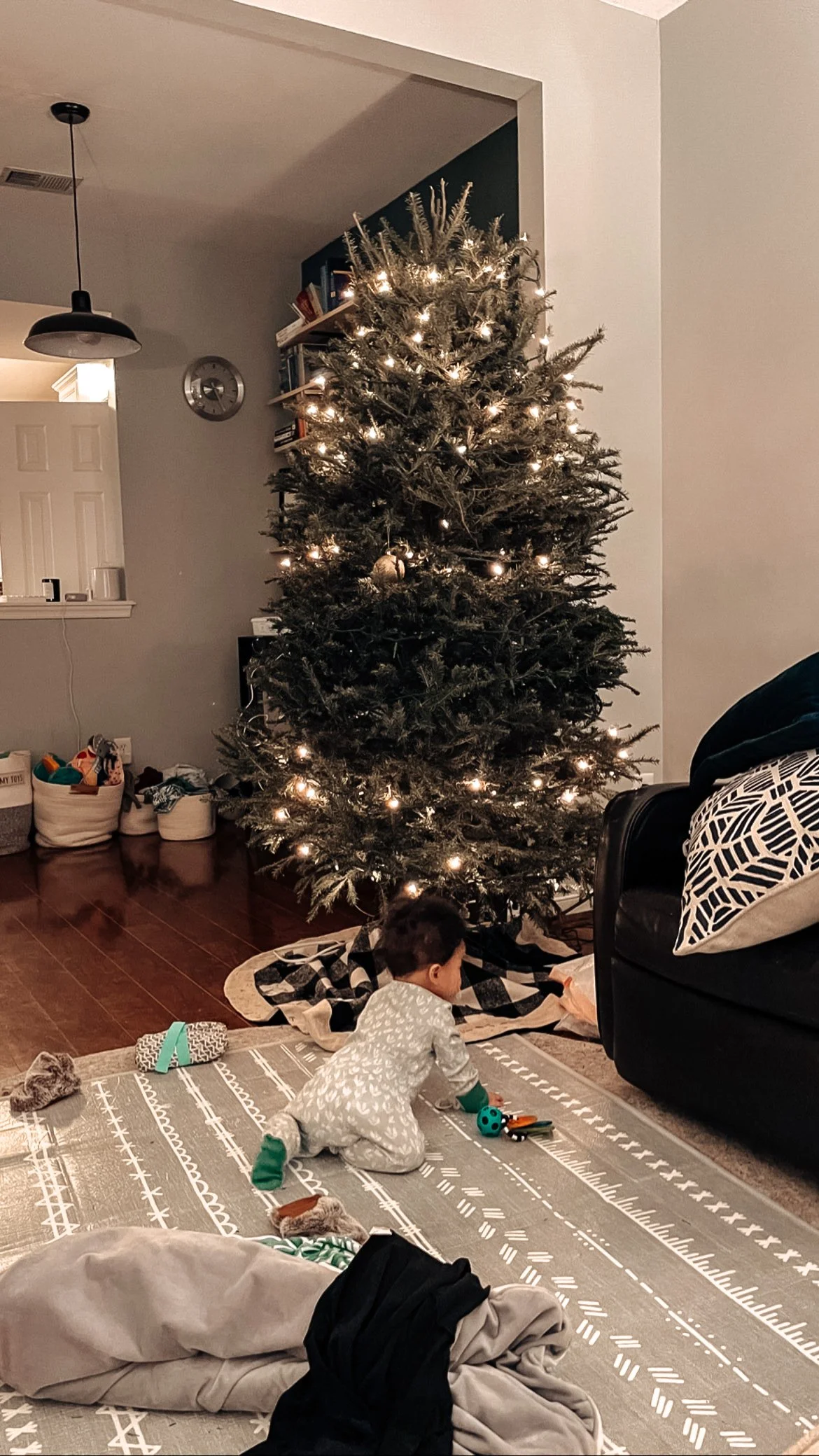 Eventually I removed the string of lights that were the wrong color and just spaced the original string of lights out so they covered most of the tree. I’m tired and this is good tf enough. What I’m able to do for my son’s first Christmas is not a reflection of me as a mother or how much I love him.